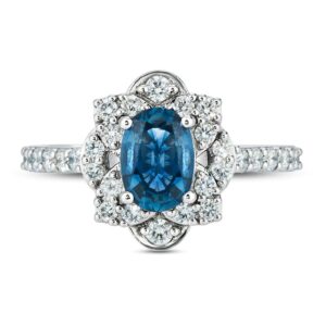 Natural Sapphire Ring 1/2 ct tw Diamonds 14K Vanilla Gold