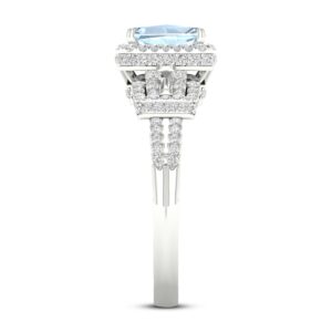 Aquamarine & Diamond Engagement Ring 1/2 ct tw Emerald/Round/Baguette-cut 10K White Gold