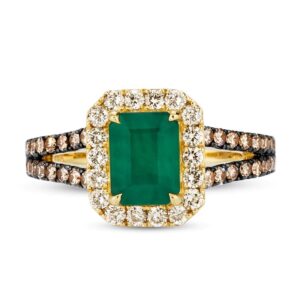 Please note: This ring is available in limited sizes. If you dont see your size here, please visit a store to order your ring.This enchanting ring from features a shimmering natural framed by luscious Chocolate Diamonds? and Nude Diamonds? set in 14K Honey Gold?. Additional Chocolate Diamonds? line the split-shank band to complete the look. The total diamond weight of the ring is 3/4 carat. Discover the Legend.